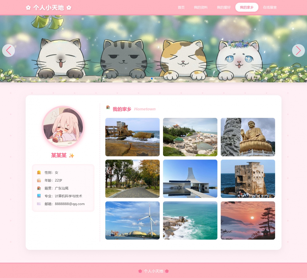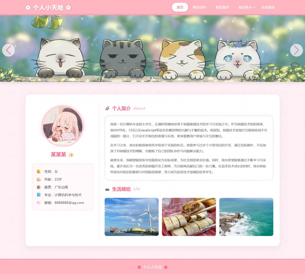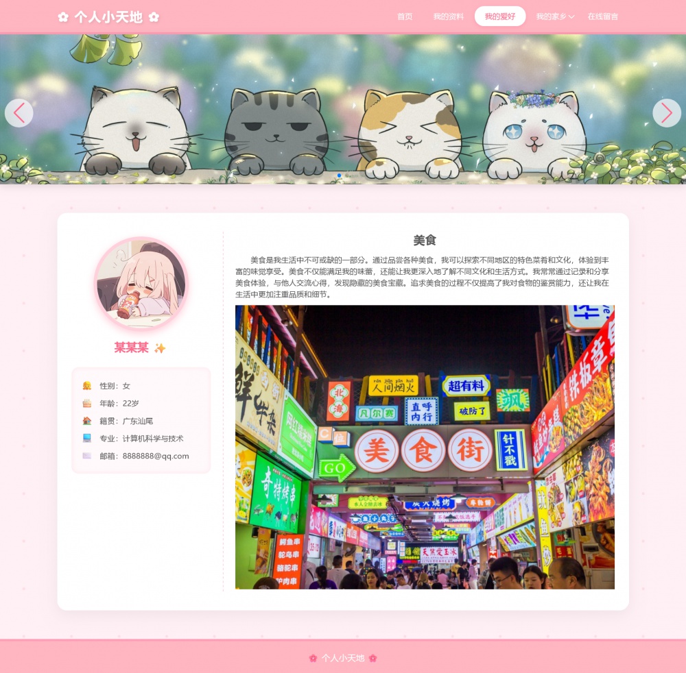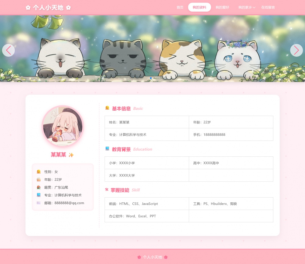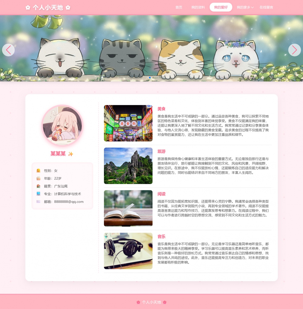 ,根据自己的需求选择即可,灵活方便,选完点击下载即可。可作为个人介绍网页模板,个人网页设计作业参考等。