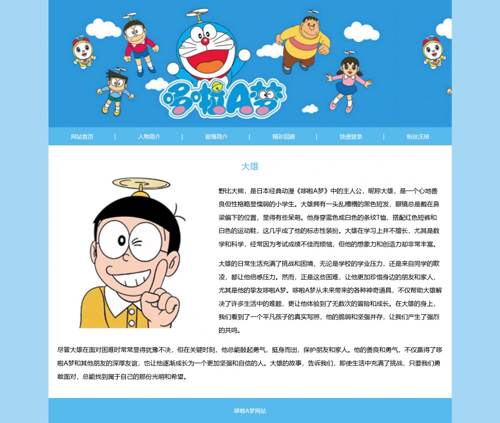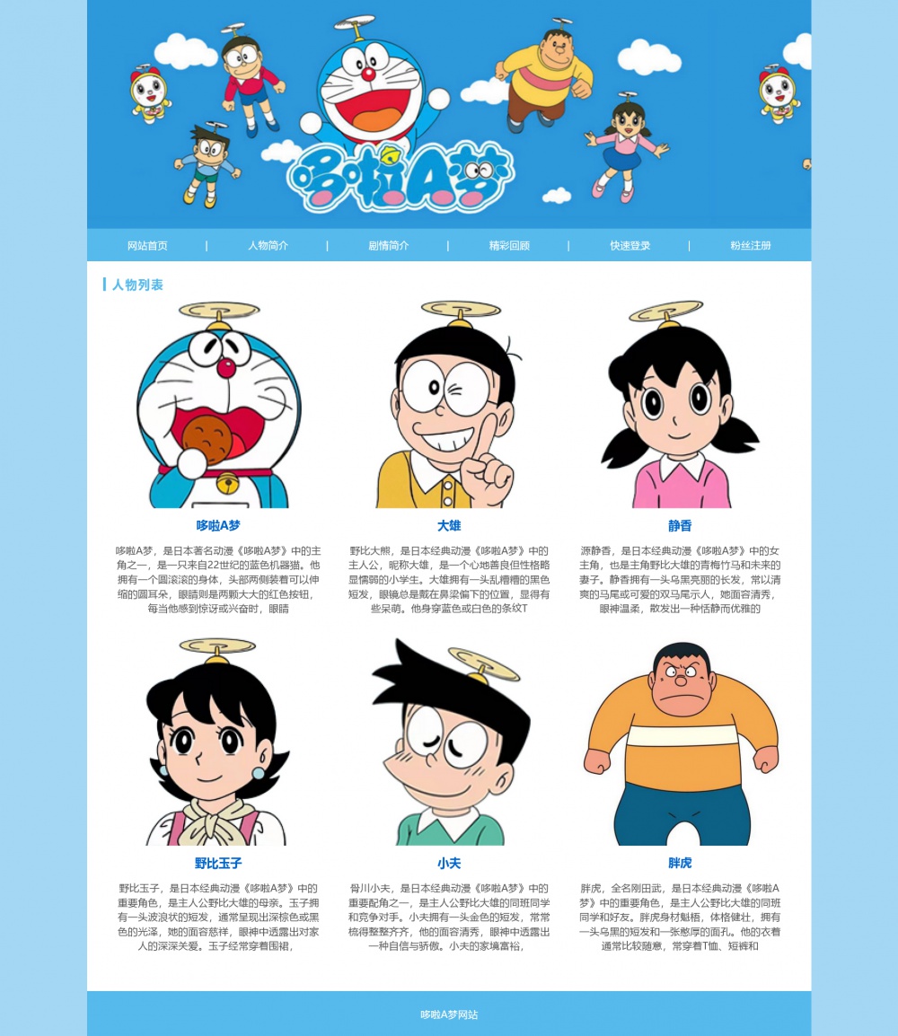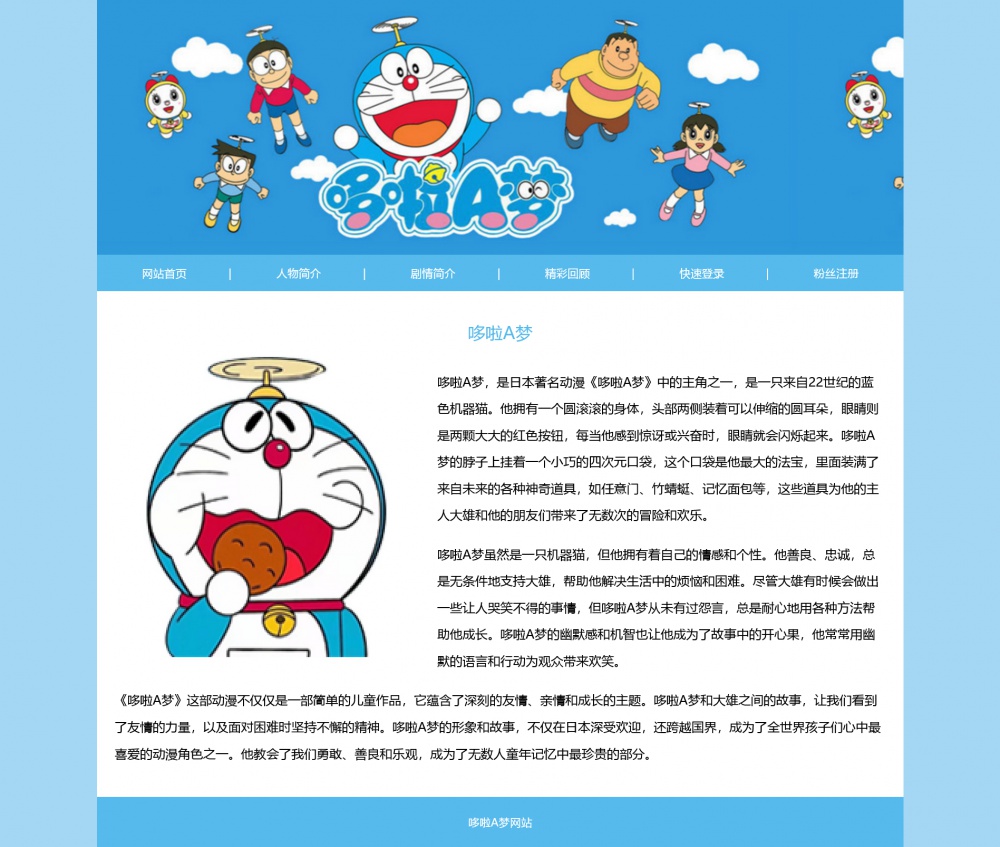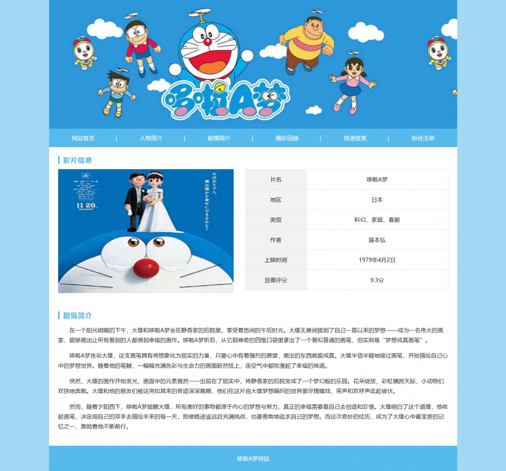 > 哆啦A梦动漫网页模板 html+css网页模板