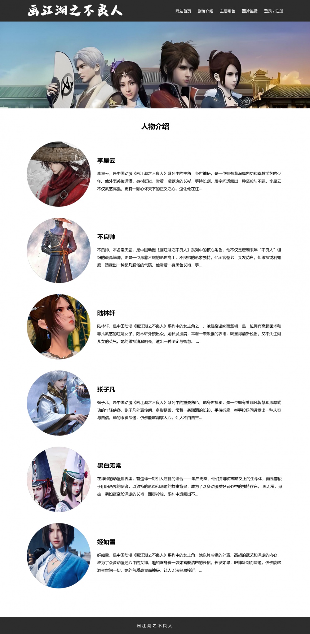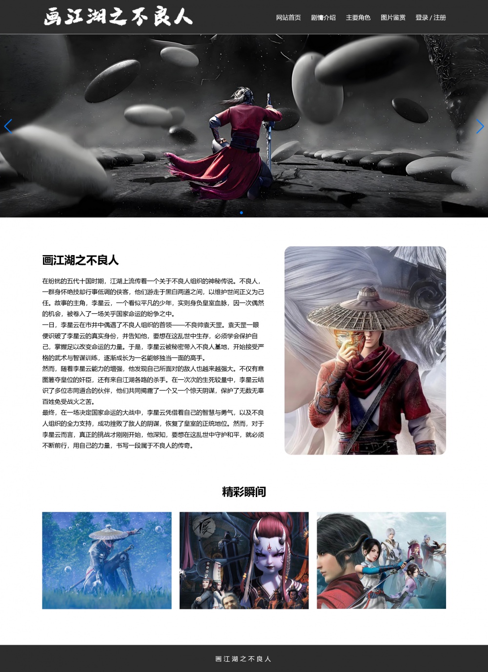 > 动漫画江湖之不良人网页模板 网页设计作业