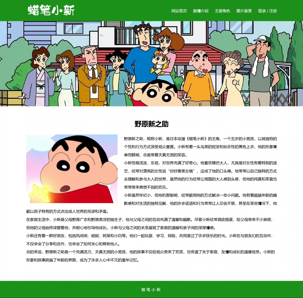 动漫蜡笔小新网页模板 动漫网页设计作业