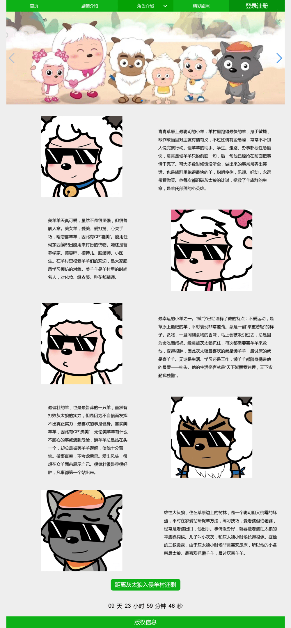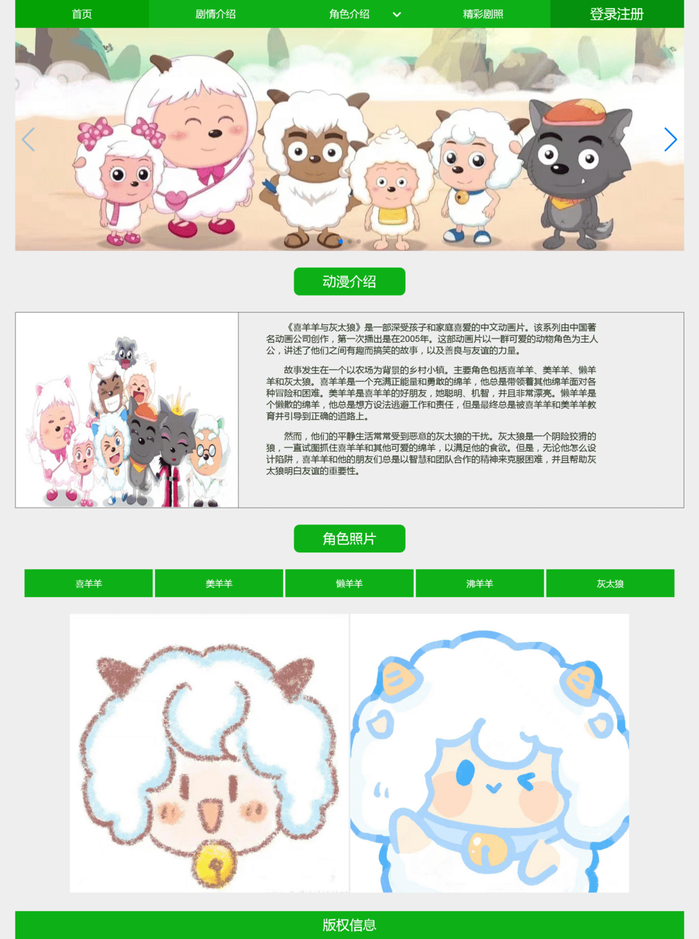 > 动漫主题《喜羊羊与灰太狼》静态网页模板