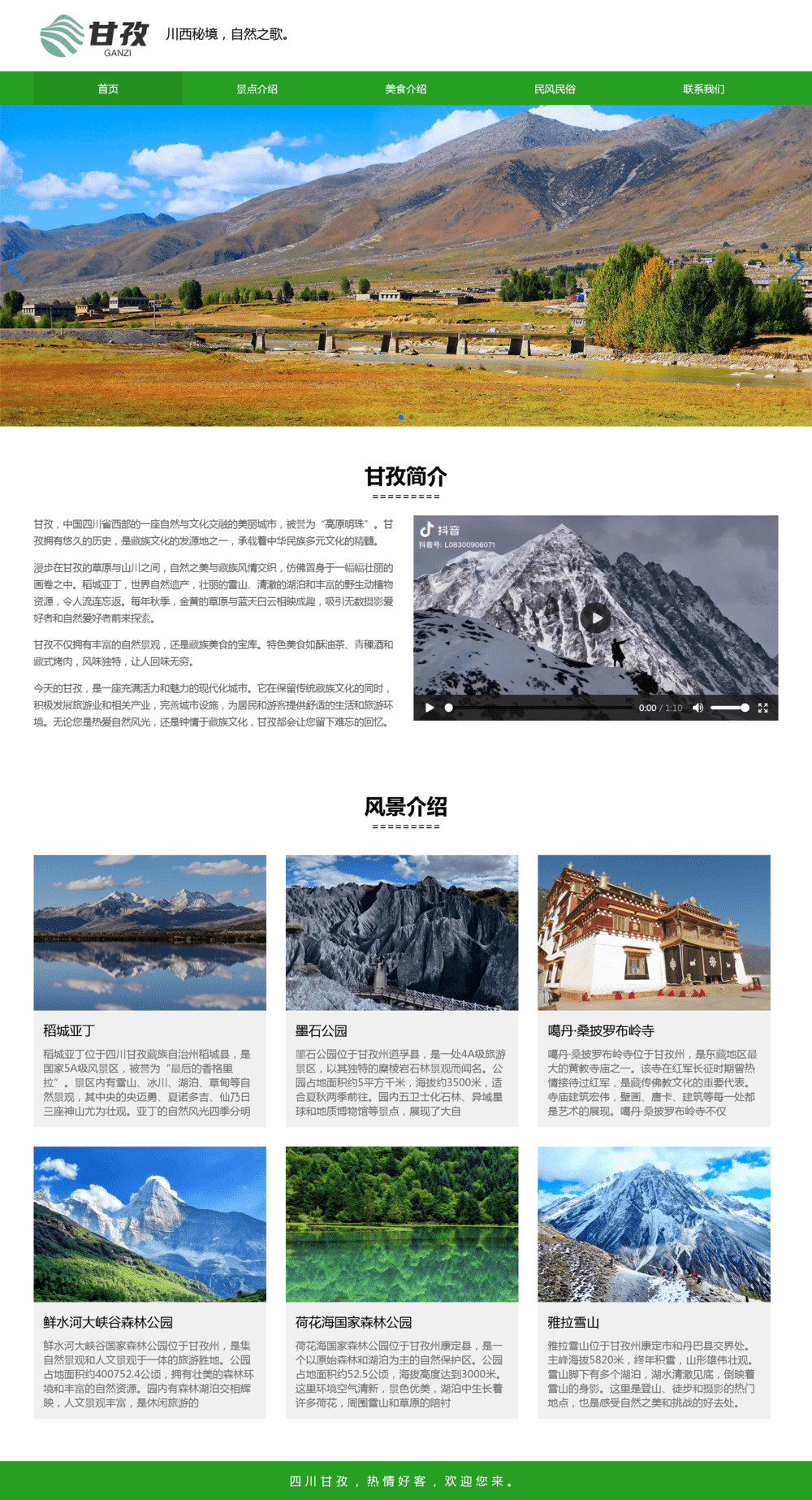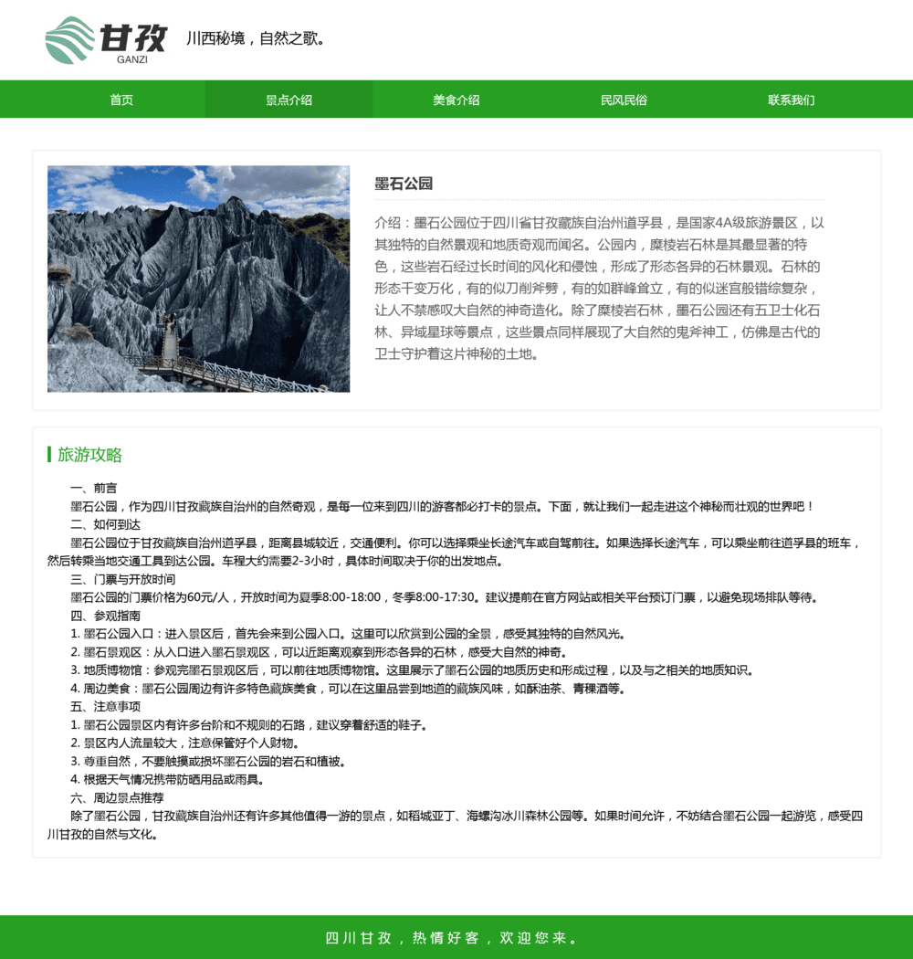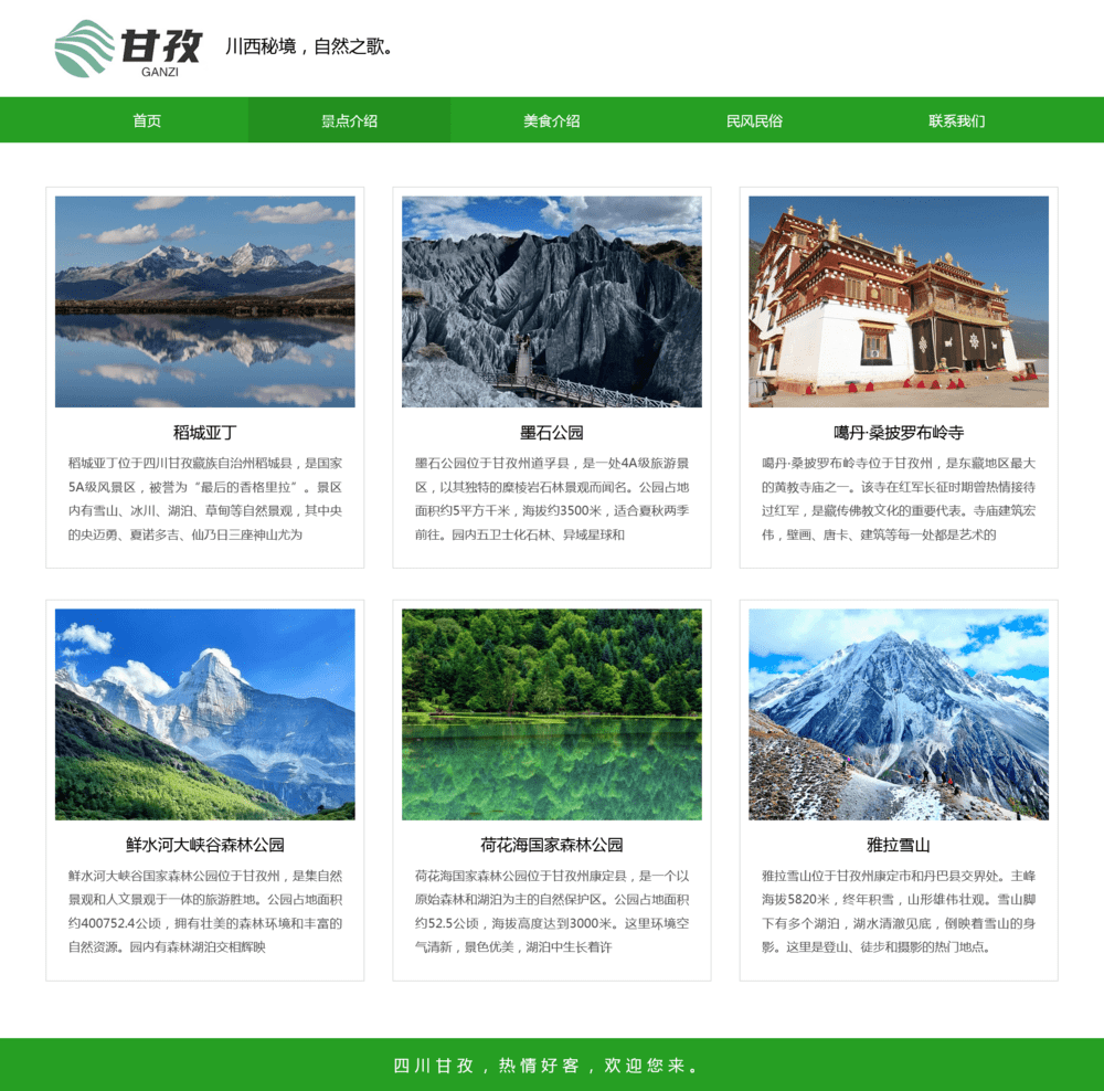 甘孜州旅游网页设计模板 web期末大作业
