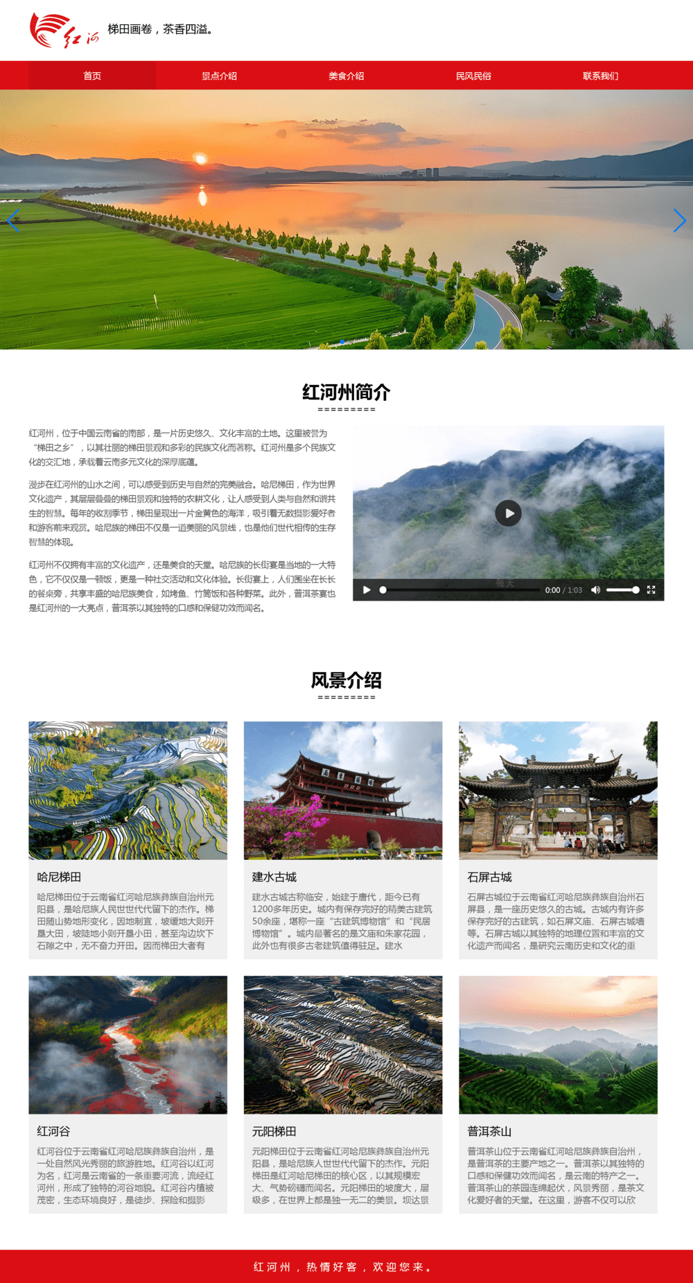 红河州介绍网页模板