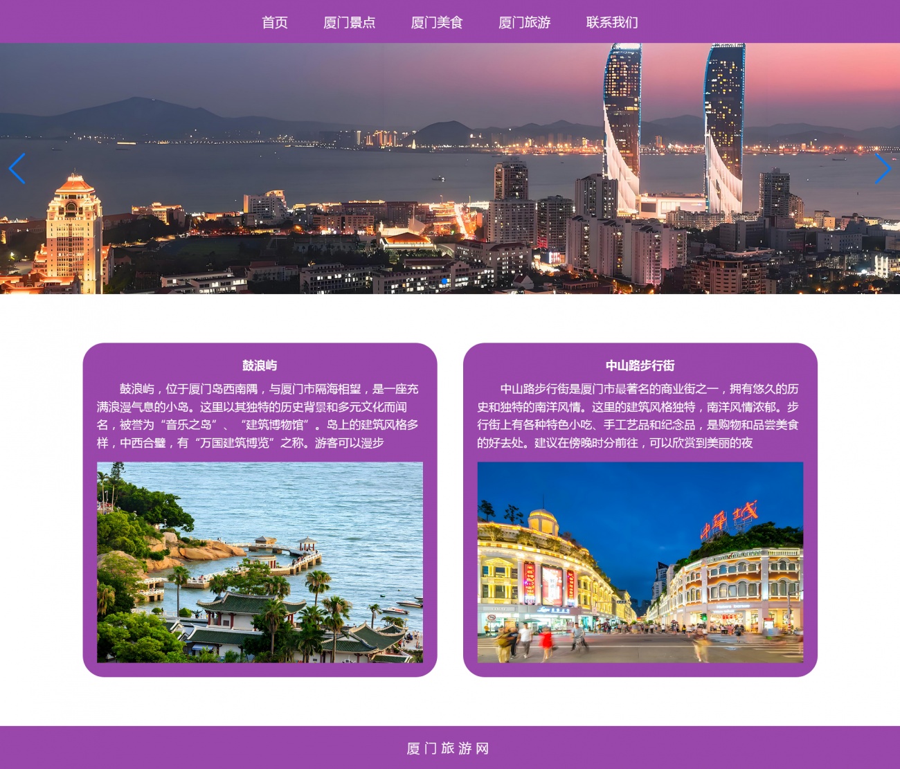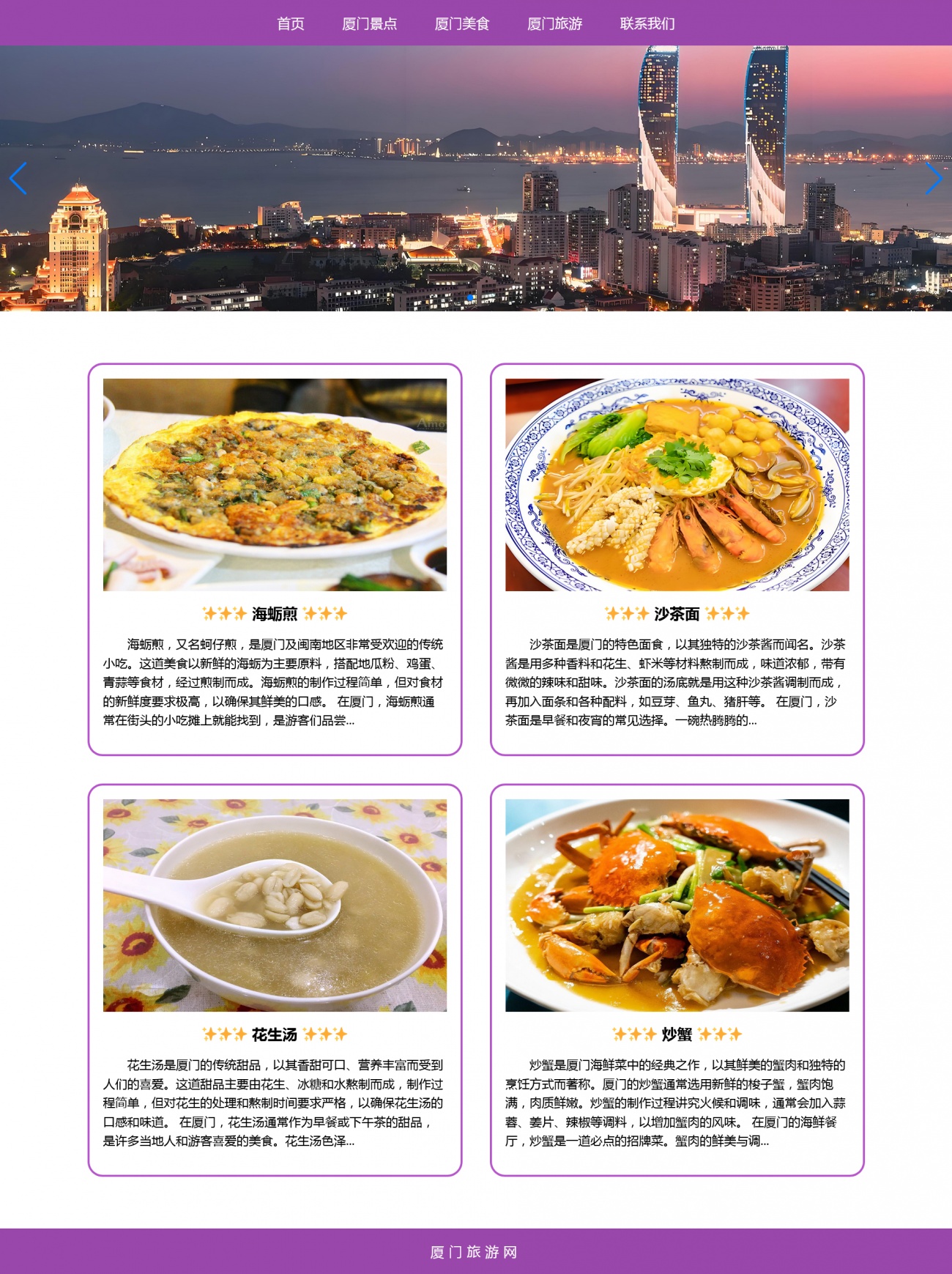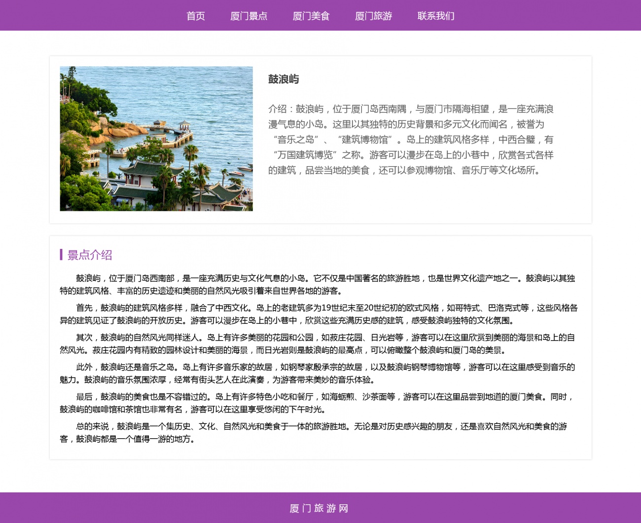 可作为厦门景点介绍、厦门人文介绍、厦门美食介绍等网页设计作业。