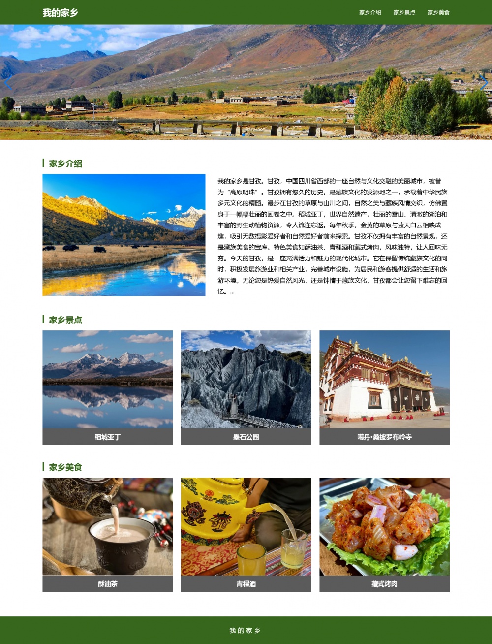 > 甘孜州网页模板(单页) 我的家乡网页设计作业