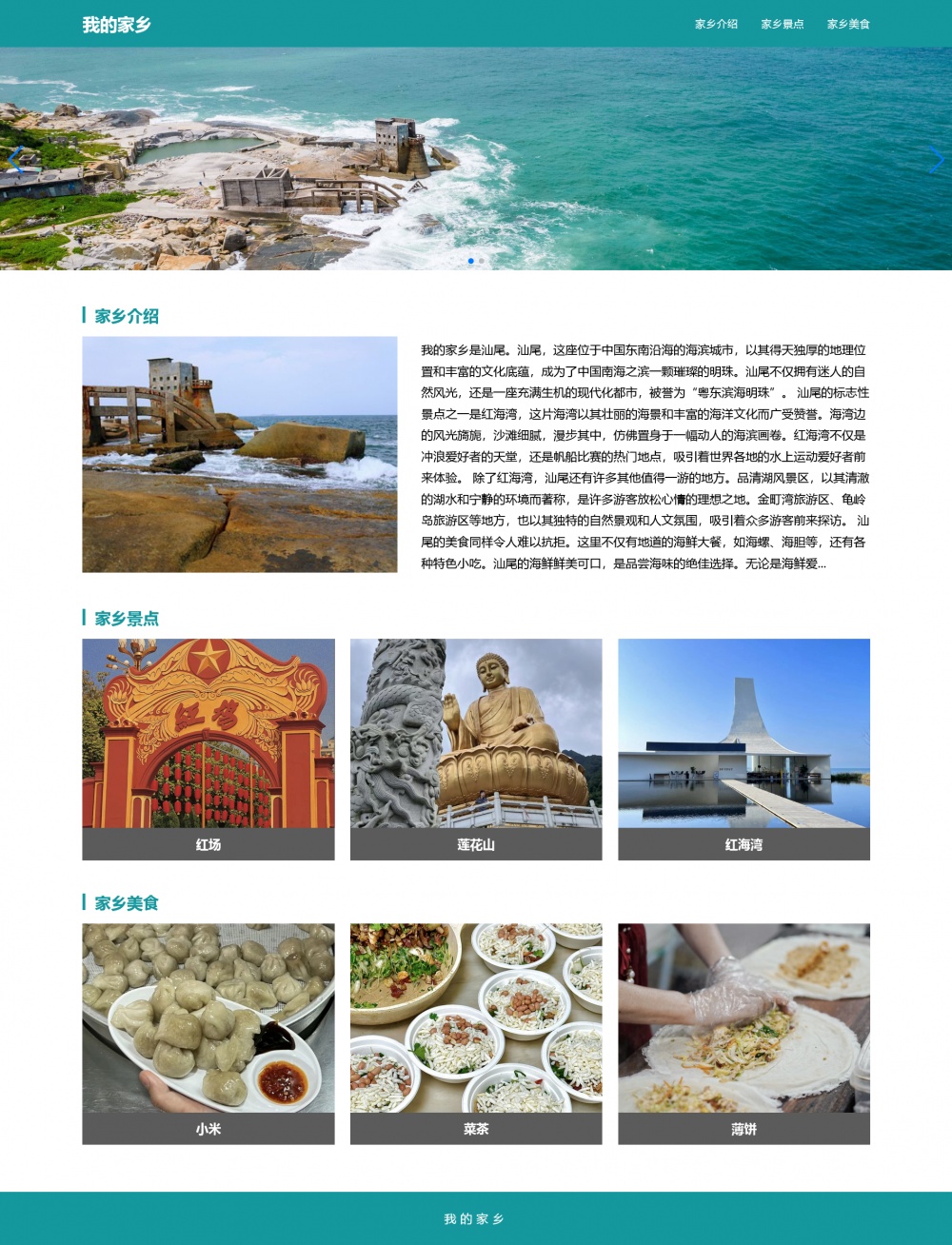 汕尾网页模板(单页) 我的家乡网页设计作业