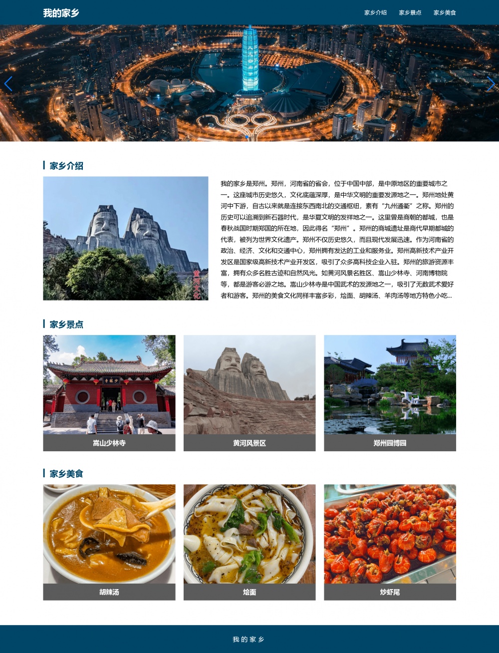 > 郑州网页模板(单页) 我的家乡网页设计作业