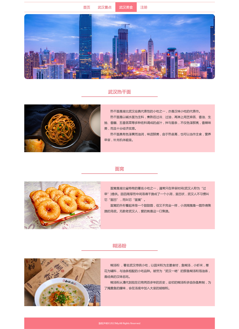 这是一套粉色的武汉介绍html+css网页模板。代码规范易于修改,少女粉主题色,让页面看起来更加简单可爱。html5模板,非网上复制下来的泛滥老旧杂乱代码。