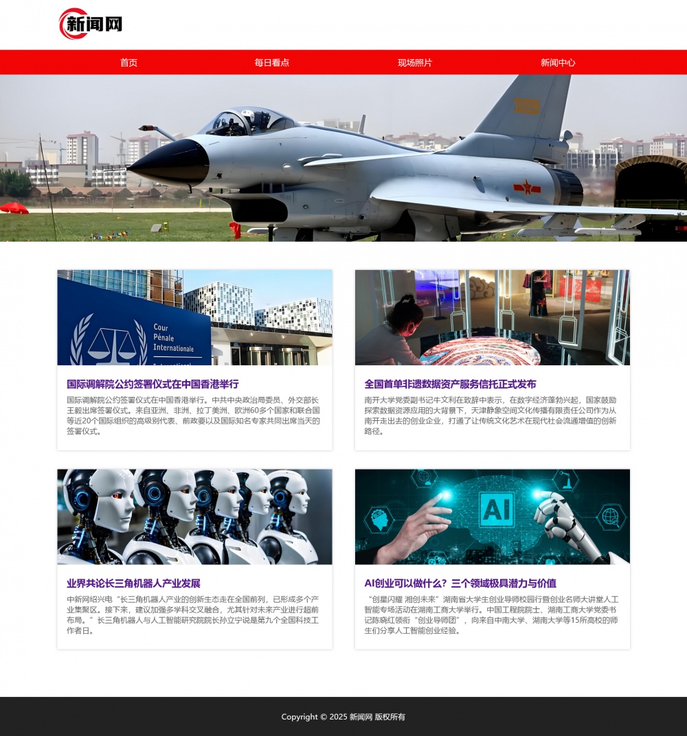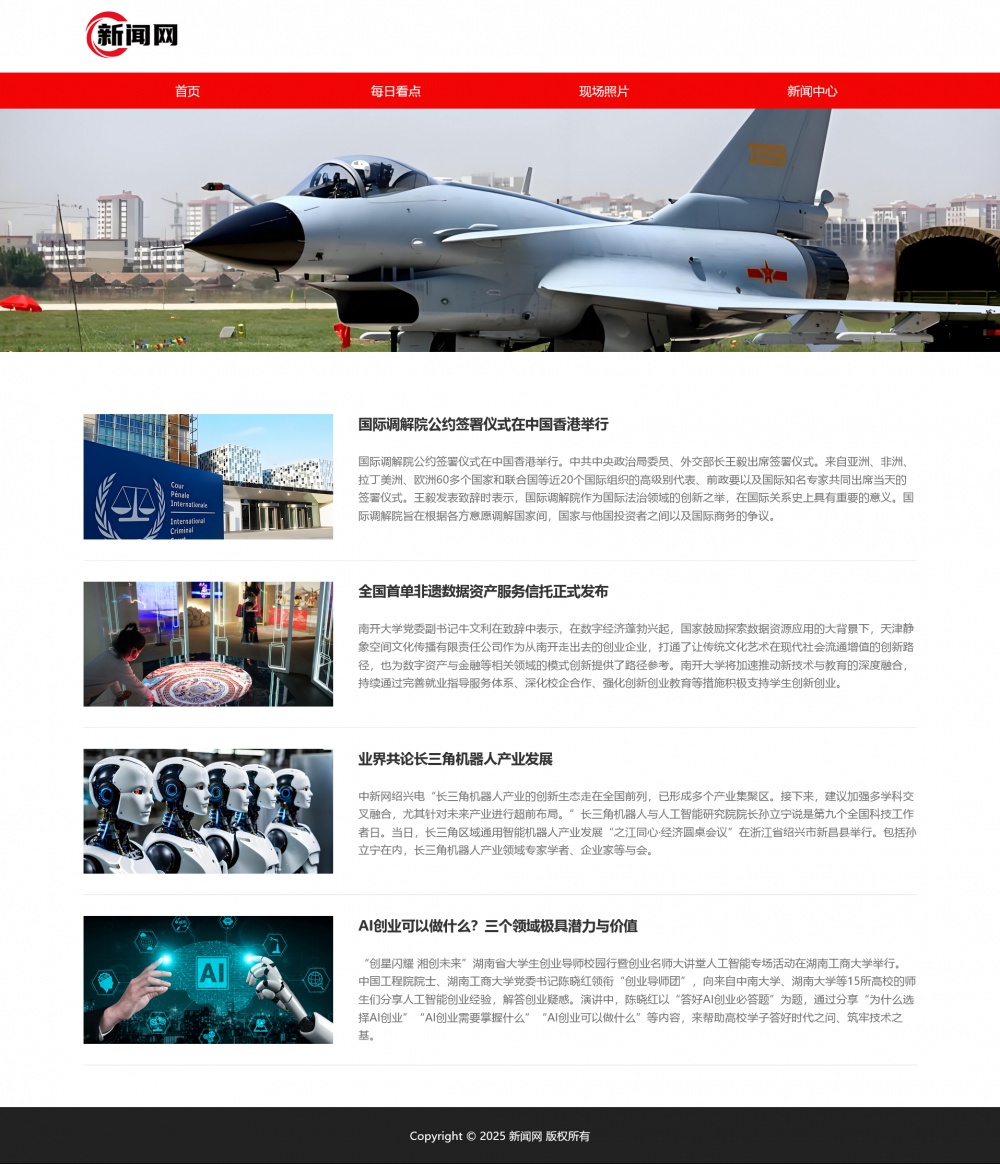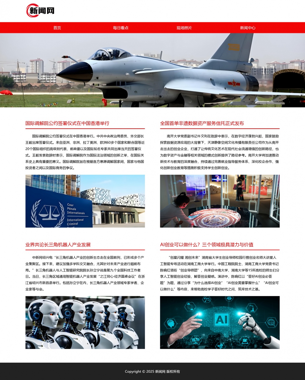 默认是4页的html+css简单版本,也可以根据需要添加三级页面(新闻详情页)、留言页面、登录注册页面等以增加页数,也可以添加轮播图(采用简单的Css动画实现),具体效果可添加技术后查看演示效果。可作为新闻资讯网页设计模板,新闻资讯网站的前端静态页面等。