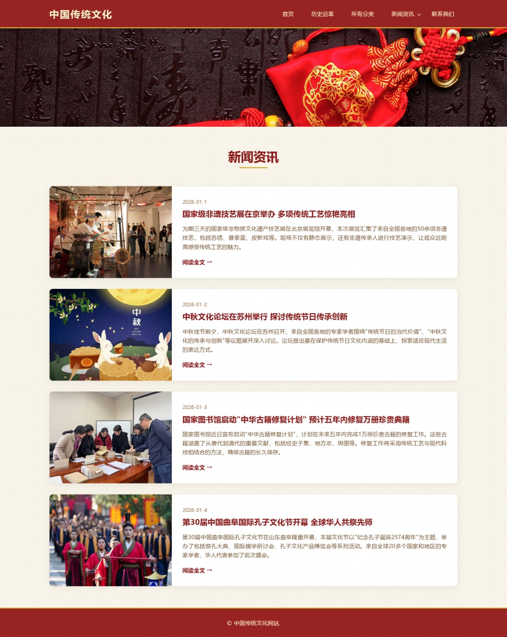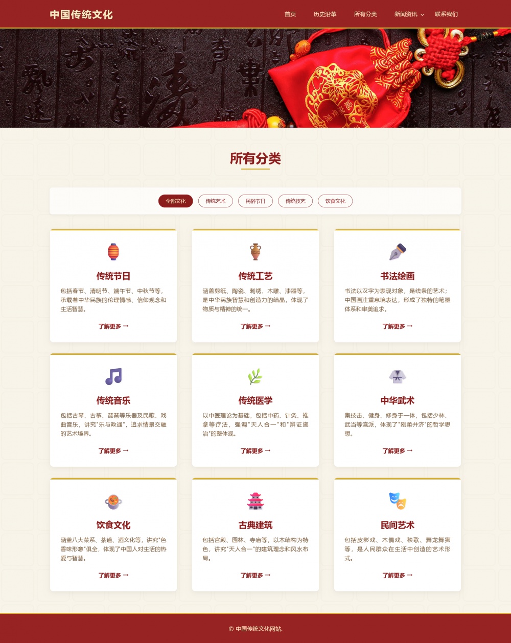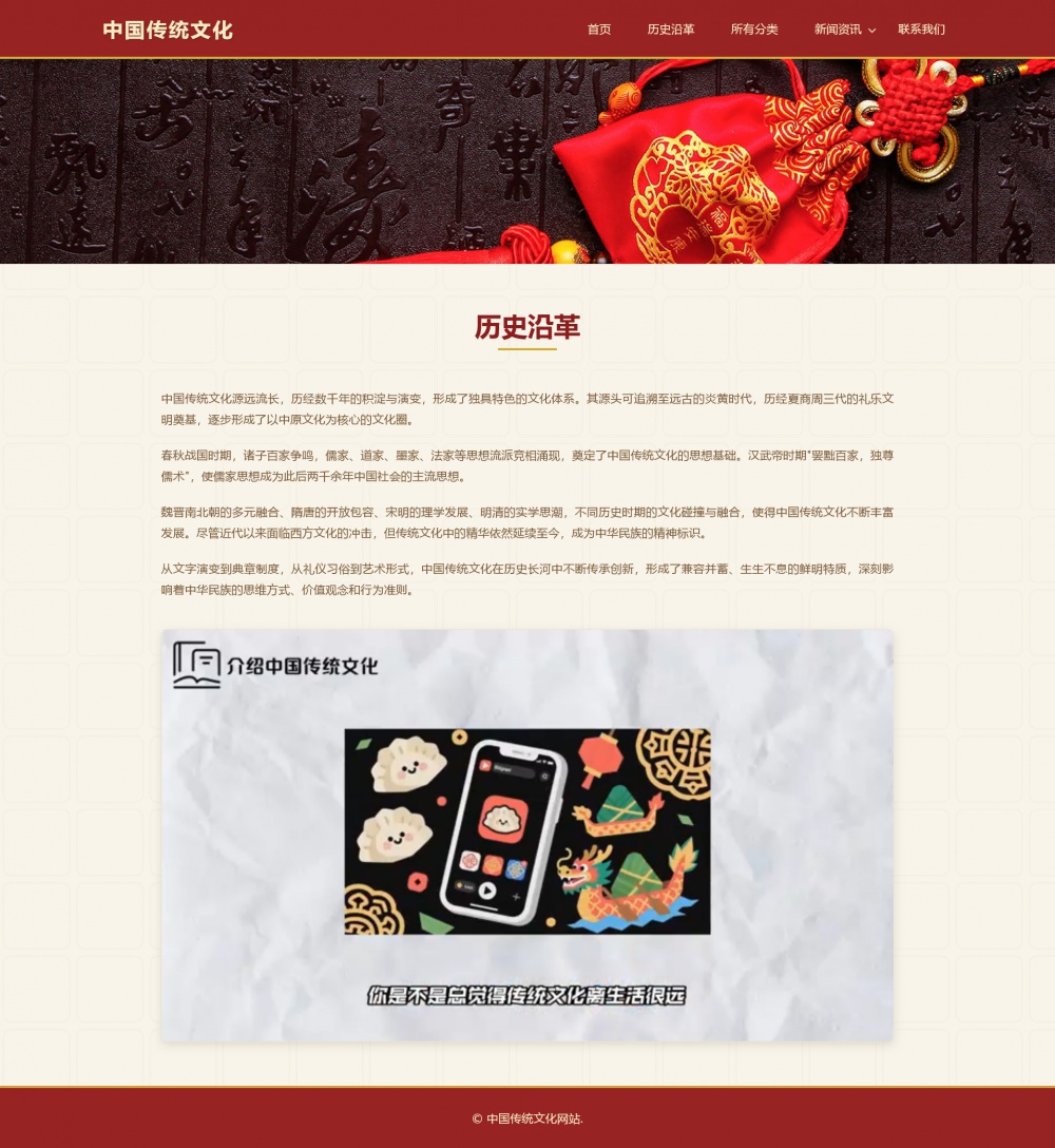 中国传统文化网页设计模版,布局好看,风格古典贴合主题。